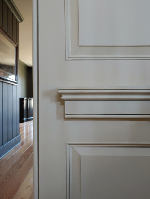 We loved the various plinth block details found throughout. They were just as unique as the moulding collection with various styles and designs for each cased opening. If you are looking to achieve a similar look here, we would recommend our Georgian casing KB112 and base KB232 which is just as bold as the one shown here as we have milled it to 1-1/4″ wide x 5-1/2″ tall. It’s stout, yet strong and bold, a perfect example of a Georgian style moulding profile.